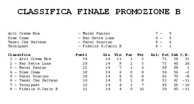 CLASSIFICA FINALE 2010/11 su 13 agosto 2015 da arcicremanoa Condividi: Fai clic per condividere su X (Si apre in una nuova finestra) X Fai clic per condividere su Facebook (Si apre in una nuova finestra) Facebook Mi piace Caricamento... Correlati