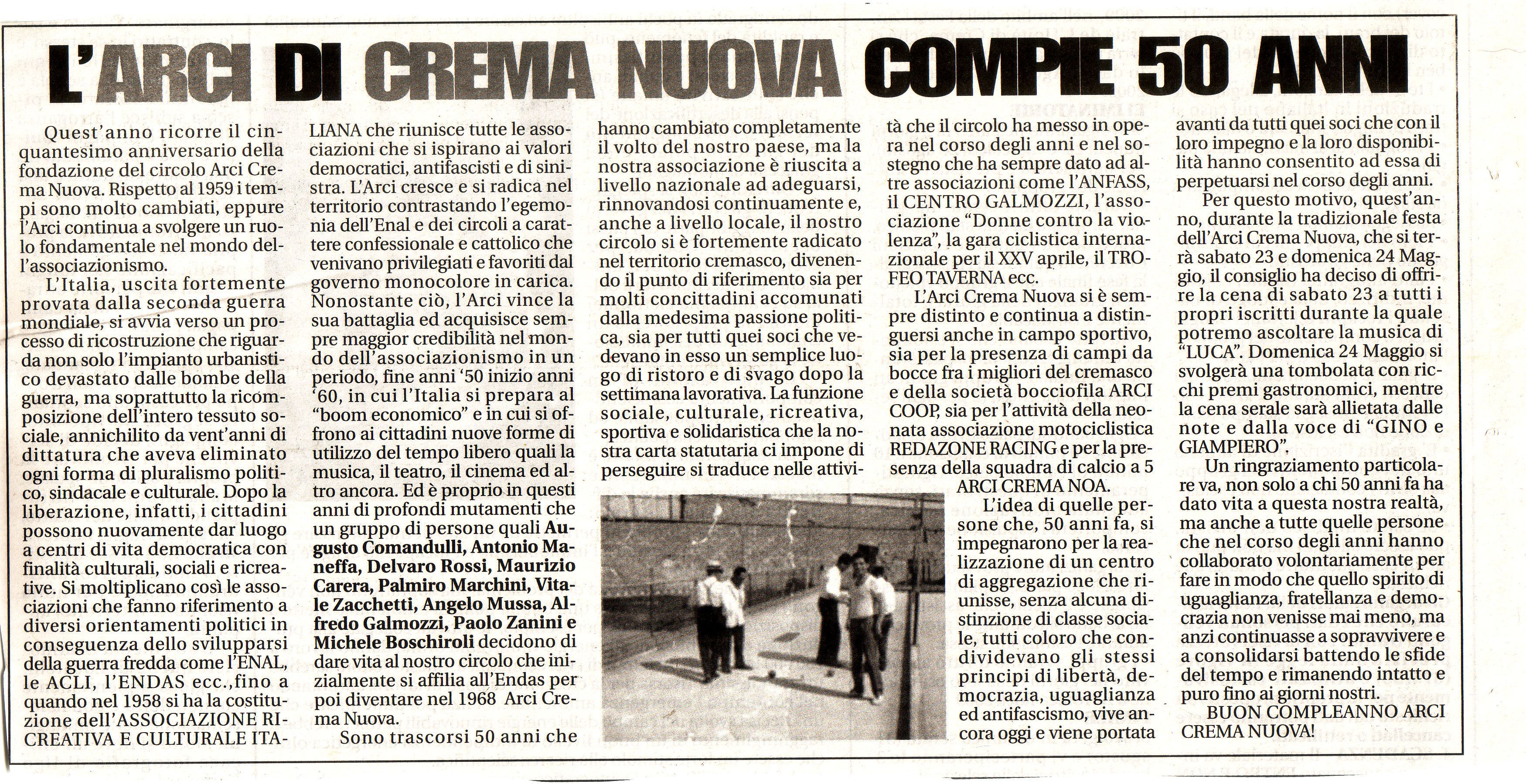 L’ARCI CREMA NUOVA COMPIE 50 ANNI 1959-2009
